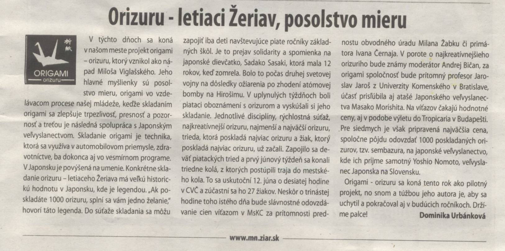 :: ORIGAMI-ORIZURU 2010 :: O PROJEKTE :: O ORIGAMI :: O PAPIERI :: PILOTNÝ PROJEKT :: POĎAKOVANIE :: FOTKY :: ČLÁNKY A REPORTÁŽE :: ZMLUVY A DOKUMENTY :: VÝSKUM 2008/9 :: SLÁVNOSTNÉ VYHODNOTENIE | ||||||||||||||||||||